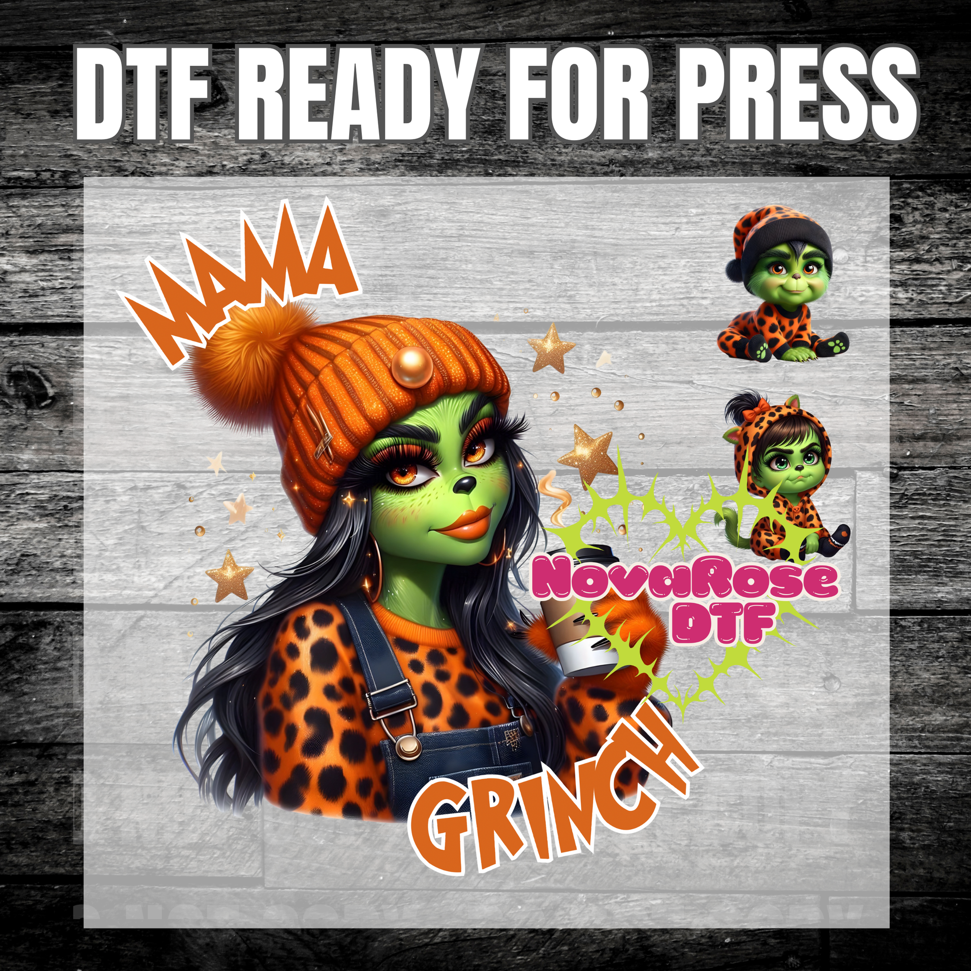 Mama leopard grinch orange DTF Transfers, Holiday Characters Favorites Transfer, Heat Press